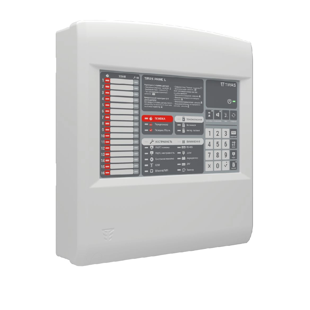 Прилад приймально-контрольний пожежний Tiras PRIME L – центральний пристрій неадресної протипожежної системи серії «Tiras PRIME» ІІ покоління. Призначений для середніх об'єктів, таких як офіс, приватна клініка або невеликий торговий центр.